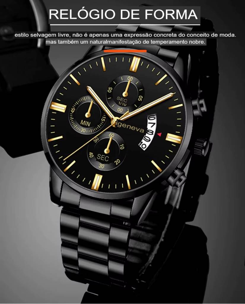 Transmita segurança, elegância e atitude em cada movimento com o Geneva Black Gold — o toque final que eleva seu estilo a outro nível.